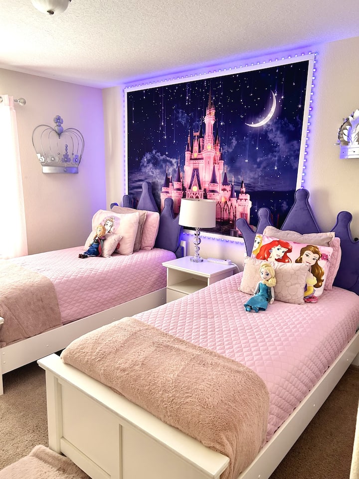 🏰✨ Направете ваканцията си в Disney World вълшебна в Disney Dream, дом с 4 спални и 3 бани, само на 9 мили от парковете! Семействата обичат спалните с принцески и диснеевски тематики, частния басейн и достъпа до удобствата на курорта Paradise Palms. С място за до 10 гости, бърз Wi-Fi, напълно оборудвана кухня и отлично местоположение в близост до Дисни, това е идеалното място за семейна почивка. ✨