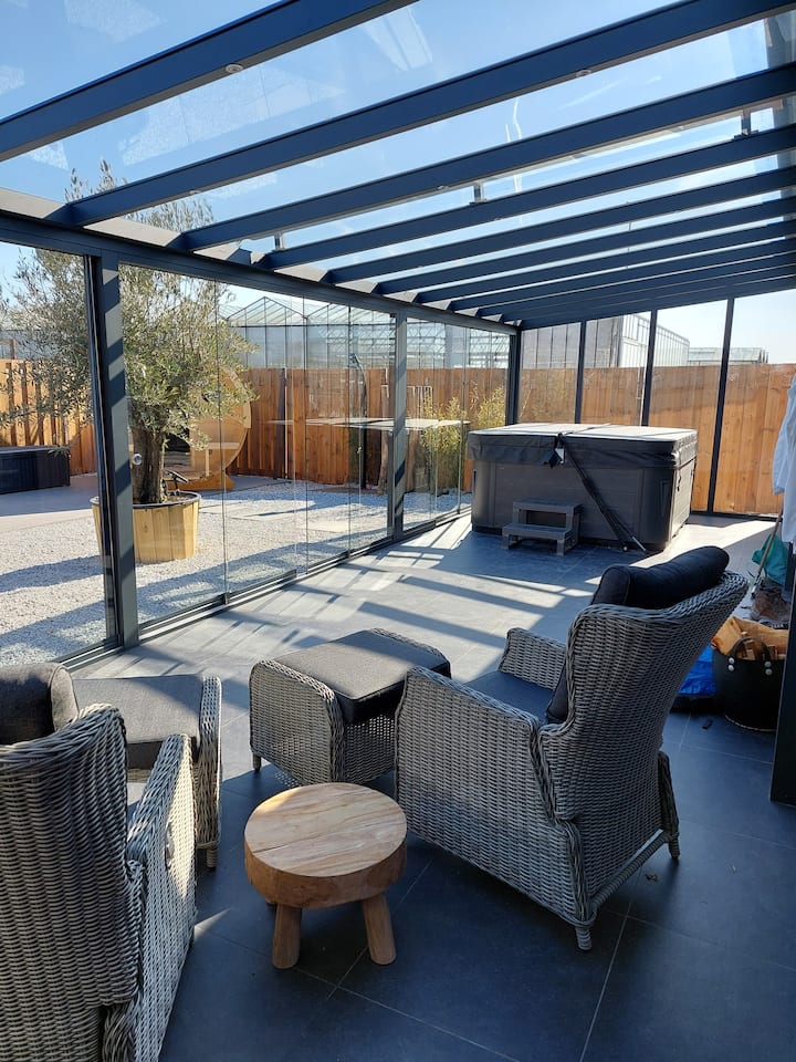 Отпуснете се с удобствата външен душ, сауна и хидромасажна вана Jaccuzi.