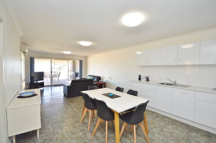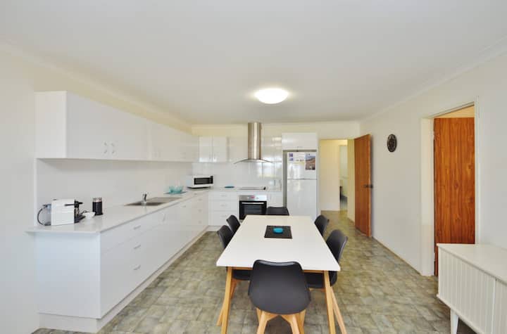 Дуплекс с 3 спални и 1 баня на брега - чудесно съотношение цена/качество. Основната спалня има 1 двойно легло, а двете други спални имат по 2 единични легла във всяка, климатик с обратен цикъл във всекидневната плюс телевизор, DVD плейър и CD плейър. Вентилатори на тавана във всички спални. В добре заредената кухня има микровълнова печка, хладилник/фризер, готварска печка/фурна и машина за кафе Breville Pod. Пералня, ютия и дъска за гладене в пералното помещение. Барбекю и мебели за открит двор на предната веранда с покрив и страхотни гледки към реката и океана. Задният вътрешен двор също има външна обстановка и има малка морава, заобиколена от градина. Паркинг за лодка. Кратка разходка до магазини и гордост.