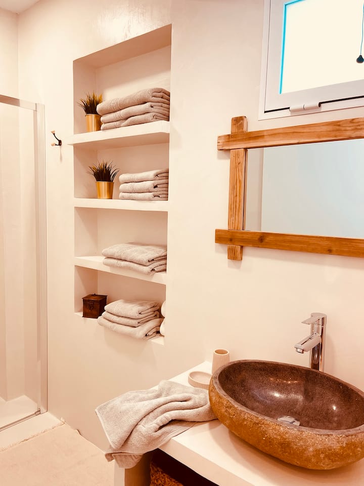 Апартаментът е изключително за гости, които ще се радват на пълен достъп до всички частни зони на къщата: напълно оборудвана кухня, всекидневна, спалня и баня, както и всички елементи и услуги, налични по време на престоя им.