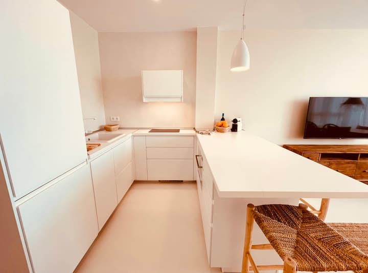Кухнята е напълно оборудвана за продължителен престой: съдомиялна, микровълнова фурна, пералня, сушилня, Nespresso и филтърна машина, електрическа кана, тостер, блендер, както и основни почистващи средства и таблетки за съдомиялна машина и пералня.
