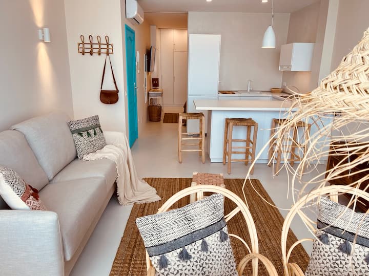 Модерен, удобен и светъл апартамент, декориран с грижа, за да можете да си починете. Намира се на последния етаж с асансьор, близо до Плая де Лас Кантерас, крайбрежната алея и парка Санта Каталина. Район с местна атмосфера, магазини, ресторанти и автобусни спирки с връзка с летището. Идеално за бягане край морето, сърфиране или гмуркане с шнорхел. Спалня с хотелски легла 1x2 м, оборудвана кухня, разтегателен диван, Wi-Fi, климатик, пералня, сушилня и два 55-инчови смарт телевизора.