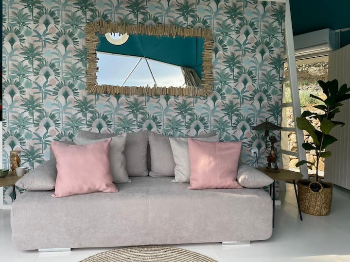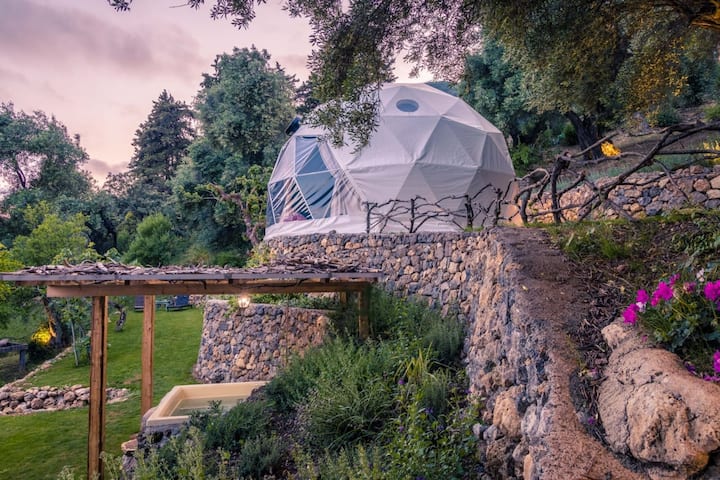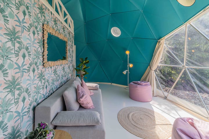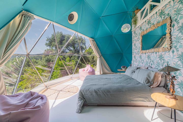 Луксозна куполна палатка и площадка с изглед към морето