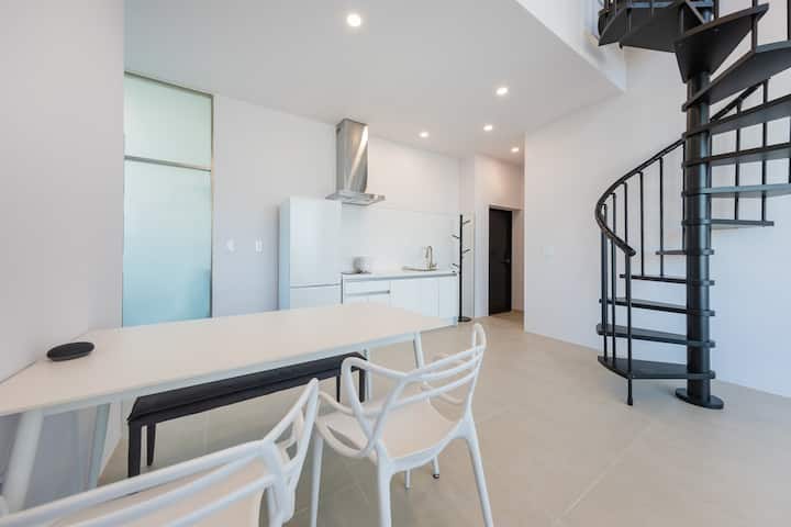 Дуплекс: всекидневна + кухня + спалня А (1 двойно легло) + 1 тоалетна