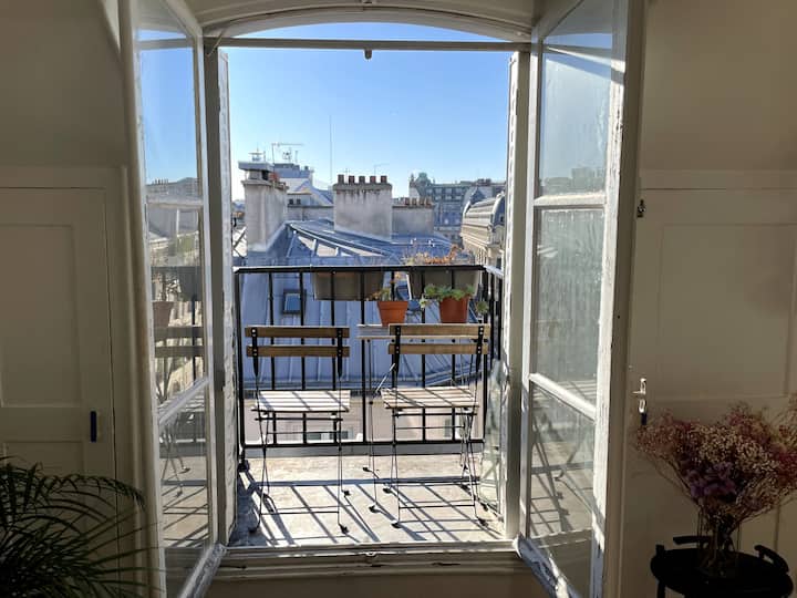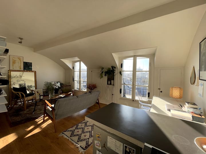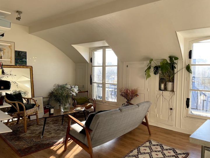 Специално за Вас: просторен апартамент 32м2, разположен на последния етаж (без асансьор) на красива сграда на Haussmannian. Бъдете внимателни, ако имате дихателни затруднения или не ви харесва да се изкачвате по някои стълби, дори и за красива гледка може да не е най - подходящото ;)