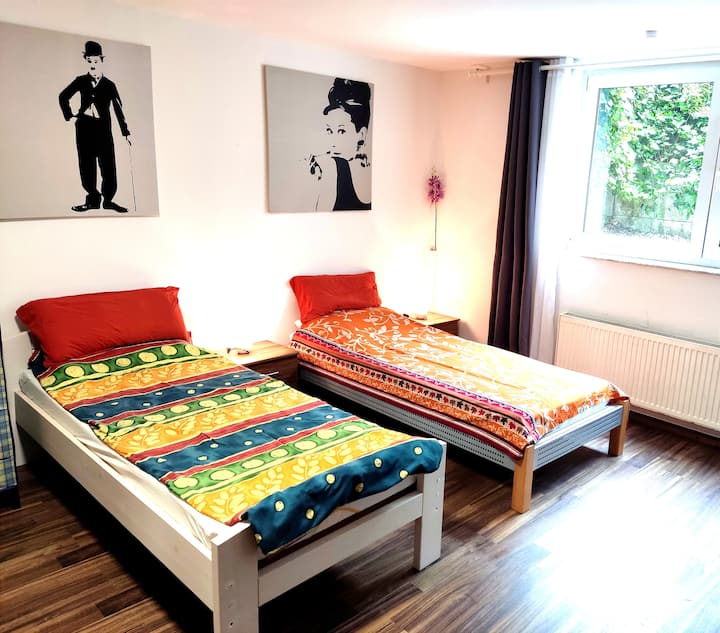 Ние сме толерантна двойка на средна възраст и обичаме да пътуваме. Като отдаваме под наем този апартамент, се опитваме да финансираме пътуванията си. И двамата работим и живеем в Дюселдорф и можем да ви дадем много полезна информация за града, ако е необходимо. Очакваме с нетърпение да ви видим в Дюселдорф.
