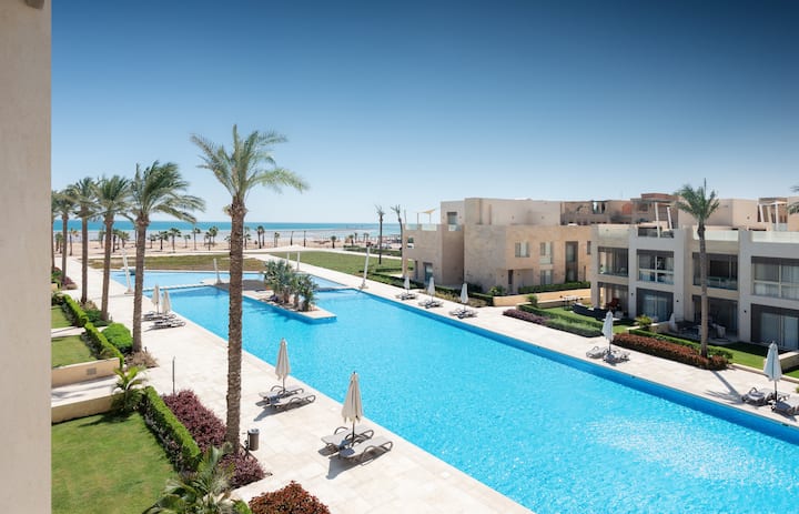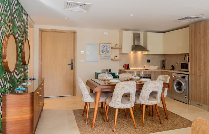 Хармонично и светло място с 2 спални в Mangroovy | Безплатен достъп до басейн и плаж