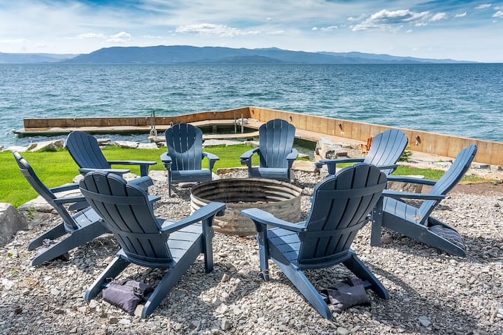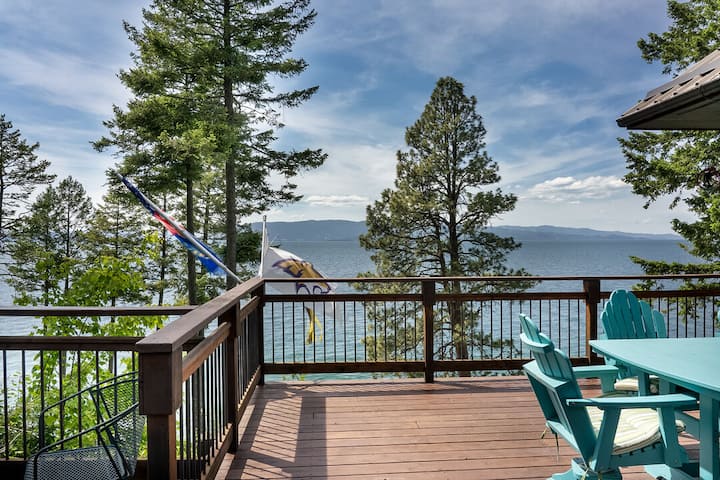 Сгушени сред дърветата по средата между Бигфорк и Полсън, ще се влюбите в 244 фута частен достъп до брега и частен док за лодки, който да използвате през деня на красивото езеро Флатхед! Този дом е абсолютно зашеметяващ с 4 спални и 3,5 бани. Големите прозорци от пода до тавана от основната жилищна площ имат някои от най - спиращите дъха гледки към езерото Flathead. С достъп до задната палуба може да се събудите с изгрева и да се насладите на кафето си или да изпиете чаша вино!