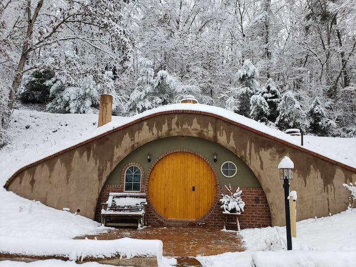Подземна куполна къща в стил Хобит.