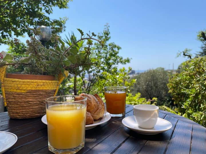 Гледка към градина и пристанище