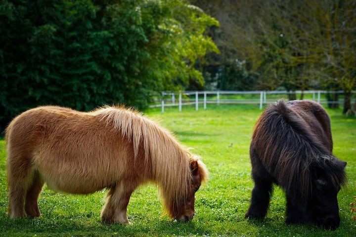 Намира се в конюшня, заобиколена от коне, с директен достъп до частна река