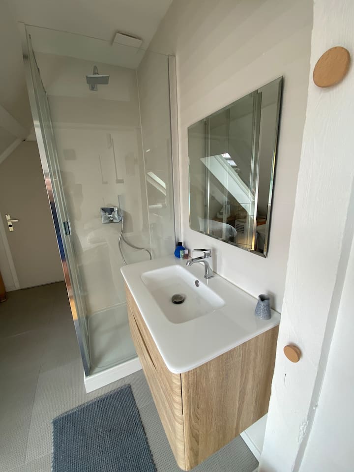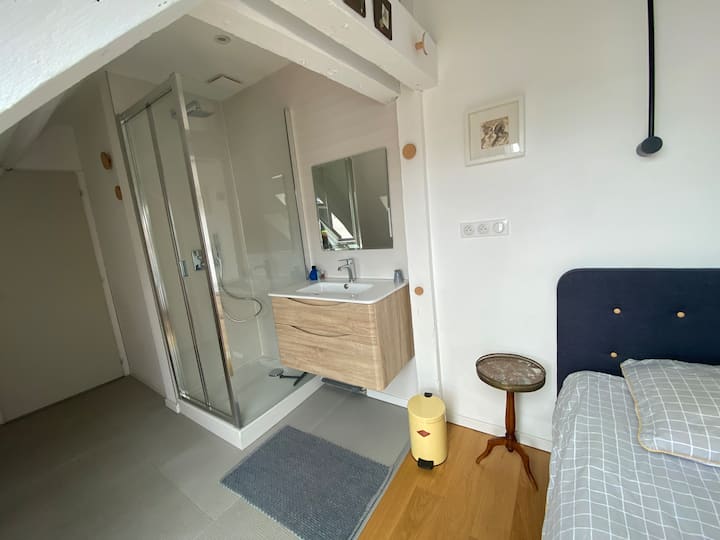 Много красива стая с изглед към двора с душ и мивка.