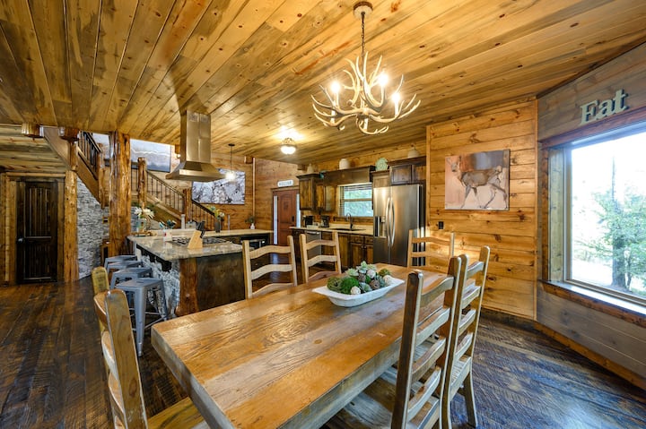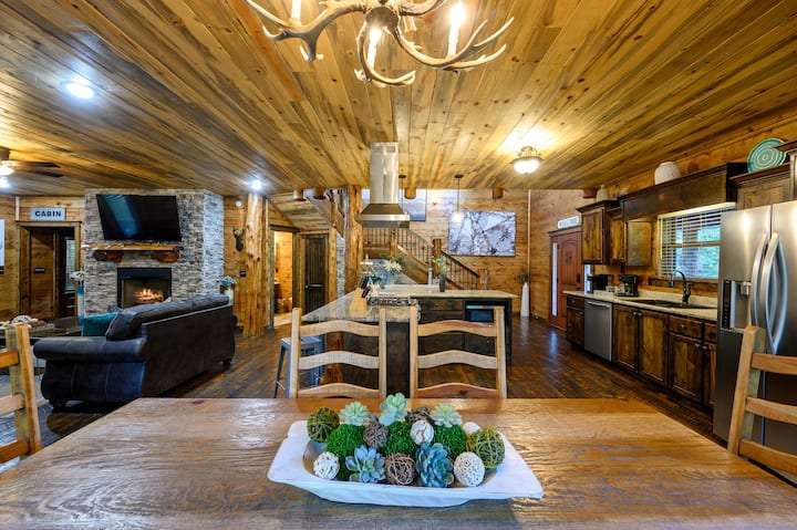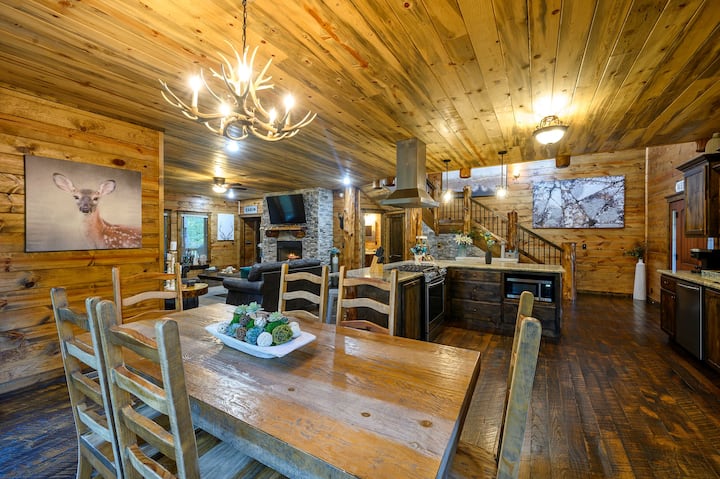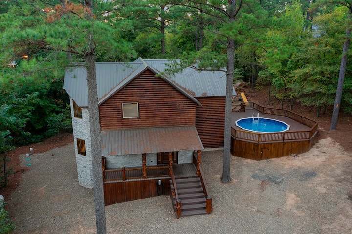 Отпуснете се в тази спокойна дървена колиба с 3 спални и 3,5 бани, сгушена в гората. Разполага с отворено оформление с напълно оборудвана кухня, трапезария с живописни гледки и релаксираща всекидневна. На горния етаж има маса за билярд, шафълборд, аркадни игри и др. Насладете се на задната тераса с хидромасажна вана, сезонен басейн (от средата на май до октомври, без подгряване), огнище и игри на открито. Това жилище е ПОДХОДЯЩО ЗА КУЧЕТА с тегло до 11 кг срещу НЕВЪЗСТАНОВЯЕМА такса от 50 USD. По-големи кучета, подлежащи на допълнителни такси, максимум 2.