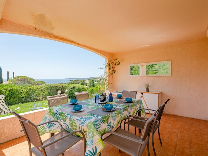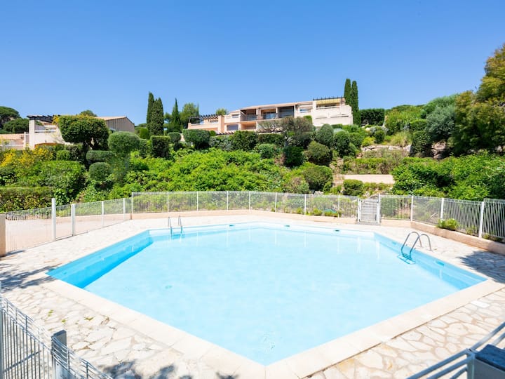 Резиденция „Les Coteaux de la Nartelle “. Извън курорта, на 5 км от центъра на Ste Maxime, в слънчева, издигната позиция на склон, на 400 м от морето, на 400 м от плажа. За общо ползване: парк 10 хектара с растения и дървета, плувен басейн (диаметър 6 м, дълбочина 140 - 240 см, сезонна заетост: 01 юни - 30 септември). Тенис на маса, боча. Стъпена пътека към къщата. Паркинг (ограничен брой места). Магазин 5 км, супермаркет 2,5 км, търговски център 5 км, ресторант 400 м, автобусна спирка 700 м, жп гара „Saint - Raphael TGV“ 20 км, пясъчен плаж „Plage des Elephants“ 400 м (малък), термални бани „Thalassothérapie Les Issambres“ 7 км. Спортно пристанище 4 км, голф игрище (18 дупки) 5 км, тенис 3 км. Близки атракции: аквапарк Aqualand 6 км, атракции в парка Azur 16 км, Сен Тропе/Раматуел 18 км, Порт - Гримо 13 км, клисури дю Вердон 95 км, Навет / совалка Сен Тропе 15 минути и 4 км. Пешеходни пътеки: Massif des Maures 5 км, Massif de l'Esterel 25 км. Обърнете внимание: препоръчва се автомобил, няма асансьор. Жилище с електрически порти. Предаването на ключовете се извършва от агенцията Interhome в Сен Максим, на 5 км. Може да се резервират допълнителни места за настаняване.