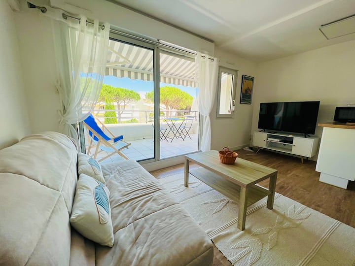 Ваканционен апартамент за 4 души в Ла Гранде Мот. С ИЗТОЧНО изложение, в резиденция с открит плувен басейн, близо до игрището за голф, тази резиденция е идеална...