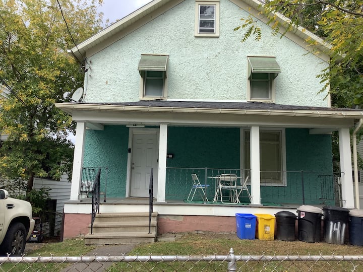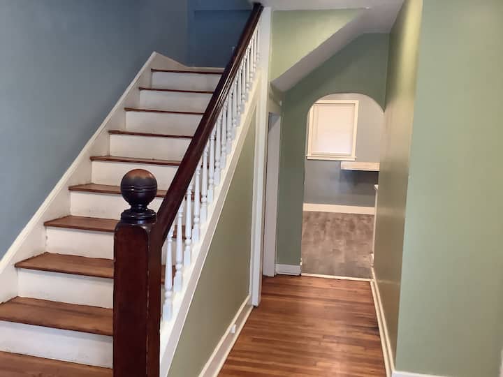 Достъпът до всички части на дома включва: 2 бани, спокойна трапезария, напълно оборудвана кухня, просторна, релаксираща всекидневна и наслаждаване на града от предната веранда.