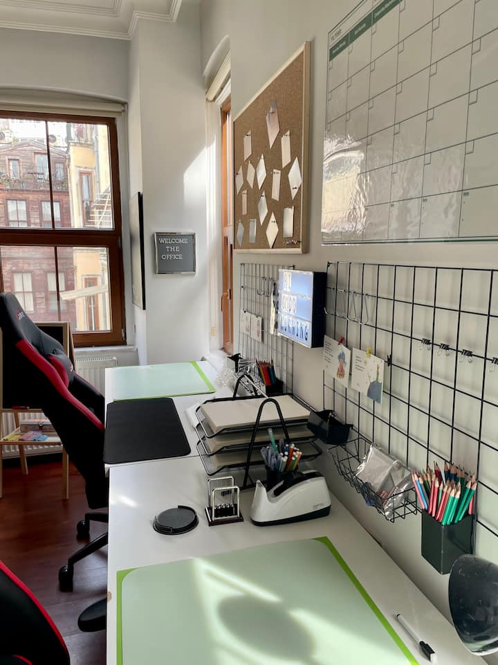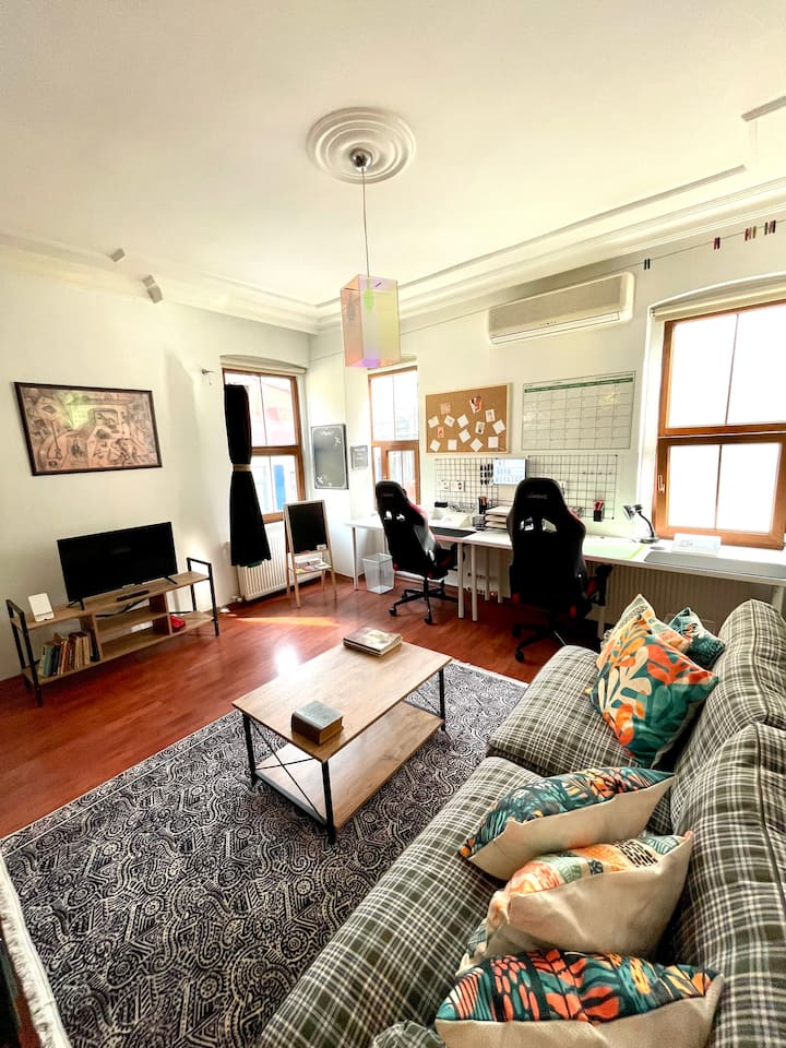 Отзивчивият офис ремонтиран апартамент също се намира в центъра на Истанбул по отношение на транспорта. (Ако идвате от чужбина, най - лесният и бърз начин да стигнете до нас от летище Истанбул са автобусите HAVAİST. Можете да проверите текущата цена на билета на уеб сайта на „Havaist “, да го резервирате, да закупите билети онлайн.(Ако искате да ви помогнем при закупуване на онлайн билети, свържете се с нас.) Като алтернатива можете да вземете такси от летището. Средната транспортна такса от летището до апартамента ни е около 140 -150 TL. - Моля, свържете се с нас 6 часа преди часа на пристигане за частен трансфер - + Можете да използвате тази опция през 2023 г., тъй като изграждането на метрото е в процес на изпълнение.) (Гостите ни, идващи от Истанбул, могат да стигнат до апартамента ни в края на 5 минути, като минат през Sıraselviler от Таксим. Могат да използват друга алтернативна улица Истиклал. Ще им бъде достатъчно да се отправят към Чукуркума, Джихангир от предната част на гимназия „Галатасарай “. Моля, изпратете съобщение за транспорт до Таксим от други градове в Юрти .)