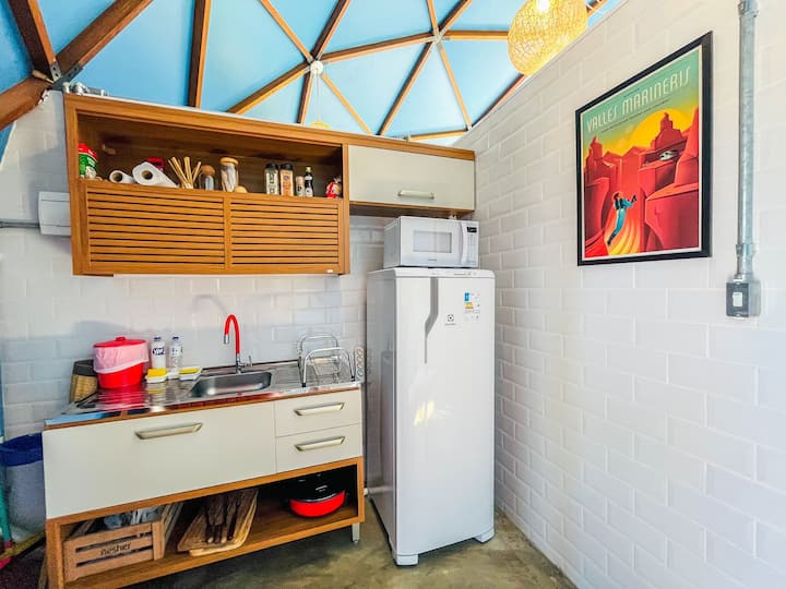 Уважаеми гости, които търсят незабравима почивка, Радваме се да споделим областите от нашето помещение, които ще бъдат на ваше разположение по време на престоя ви в ECO GLAMPING BRAZIL: Private Geodesic Dome: сърцето на изживяването ви. Вторият геодезически купол, щателно проектиран през 2021 г., ще бъде вашето светилище по време на престоя ви. Оборудвано с модерни удобства и невероятна гледка, това ще бъде вашето лично пространство за почивка, почивка и гмуркане в спокойствие. Зони за отдих на открито: Отвъд личния ви купол ви каним да разгледате внимателно проектиран на открито. На ваше разположение са спокойни пешеходни пътеки, места за пикник с панорамни гледки и тихи кътчета за съзерцание. Пространства за релаксация: Знаем, че моментите на спокойствие са от съществено значение. Така че разполагаме с външни жилищни помещения, където можете да се отпуснете с книга, да се насладите на чай или просто да се насладите на природата около вас. Персонализирана поддръжка (скоро): Екипът ни е на ваше разположение, за да се увери, че всеки аспект от престоя ви е перфектен. Можете да търсите местни предложения, нужди или допълнителна информация. Желанието ни е да се насладите напълно на всяко кътче от помещението ни и да се чувствате наистина свързани с природата и себе си. Надяваме се, че това описание на наличните зони ще ви вдъхнови да се потопите в уникалното изживяване, което сме подготвили за вас. Очакваме с нетърпение да споделим това изключително място с вас! Екипът на ECO GLAMPING BRAZIL