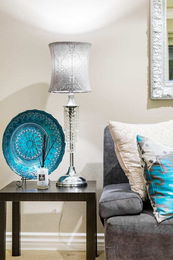 Има изцяло нова баня и тоалетна с гранитни плотове, кърпи в луксозен стил, голям дрешник. Напълно нова кухня с уреди от неръждаема стомана и напълно оборудвана за престоя ви. Има кът за хранене, телевизор с високоскоростен интернет/WI - FI. Красиви отразяващи произведения на изкуството и нови мебели са поставени в целия интериор. Мястото включва много самостоятелен, покрит вътрешен двор с полилей, както и частен резервиран паркинг на 5 крачки от входа ви. Има климатик и отопление със самостоятелен санитарен възел. Гардеробът се удвоява като малка детска стая - има прозорец към природата. Подходящо е за нашето двойно легло тип „разтегателен диван“ или на ваше разположение.