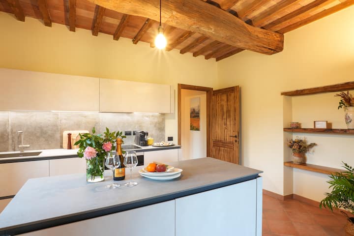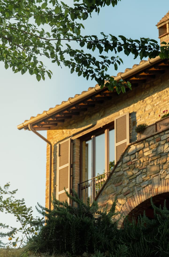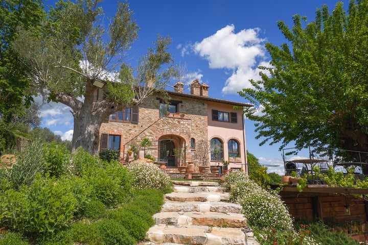 Ние сме Кайла (американка/канадка) и Лудовико (италианец/австралиец). Пристигнахме в Умбрия преди 6 години и оттогава завършихме мащабни ремонти на традиционната ни ферма от 17-и век, включително впечатлящ план за озеленяване, който сега може да се похвали със зашеметяващ басейн с изглед към древни лозя и маслинови горички. Нашият провинциален имот предлага идеалното съчетание между традиционен и лукс, като същевременно ви дава вкус на истинския италиански живот!