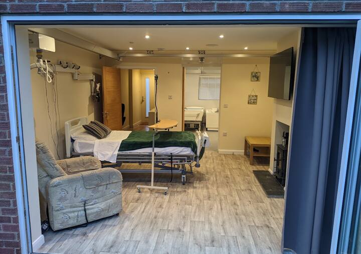 Семейно жилище, адаптирано за хора с увреждания, с подемник, фиксиран на тавана
