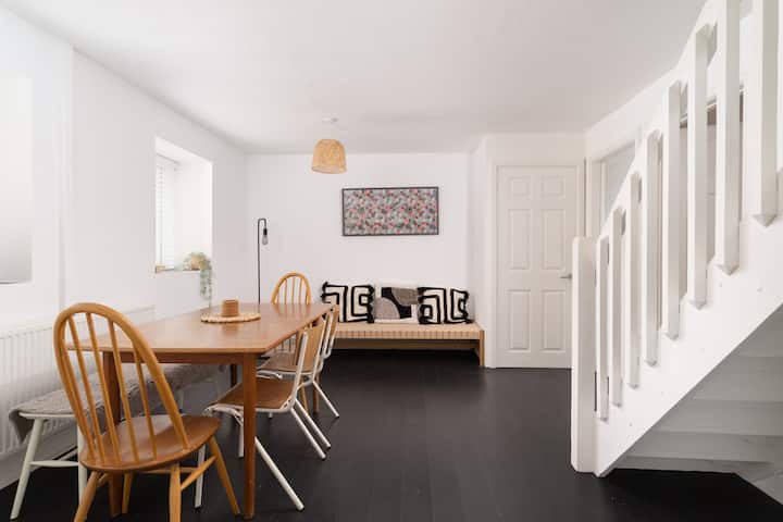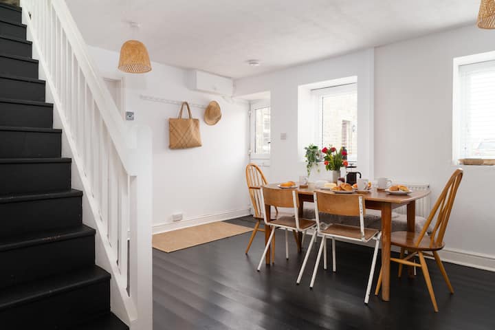 Това е просто, подредено пространство, чудесно за двойки или малки семейства, с една баня и две спални на приземния етаж. Кухнята и трапезарията също са на приземния етаж, а всекидневната е на горния етаж.