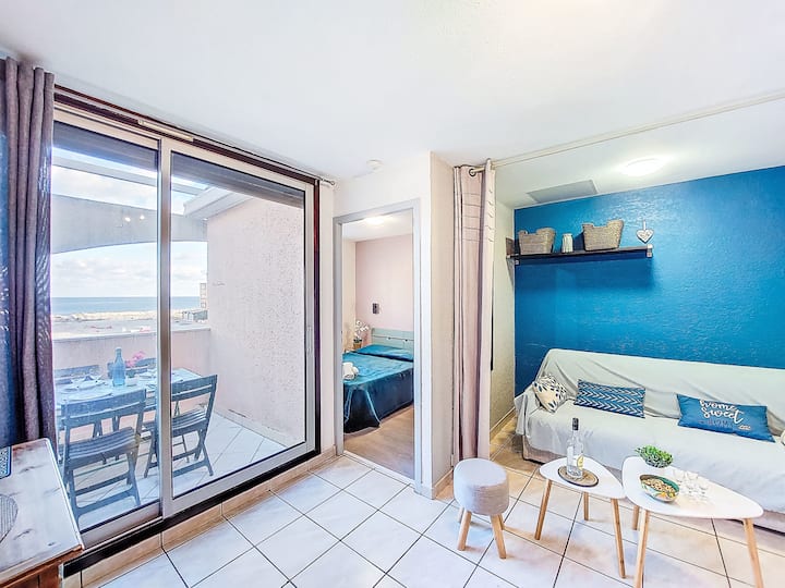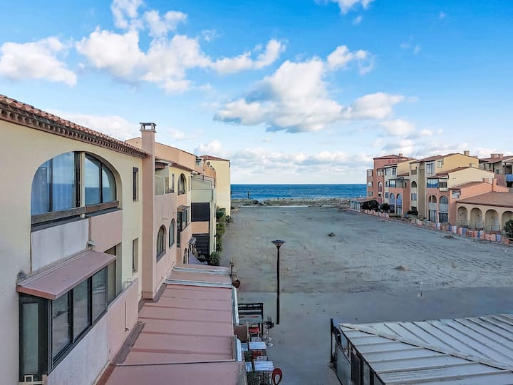 Резиденция „Front de Mer “, 3 етажа. В квартал Гранде Плаж, на оживена позиция, на 100 м от морето, на 100 м от плажа. В комплекса: паркинг. Магазин, хранителен магазин 50 м, супермаркет 6 км, ресторант, бар, пекарна, кафене 50 м, автобусна спирка „Les Marines“ 300 м, жп гара „Перпинян“ 24 км, пясъчен плаж 50 м. Училище за сърф 2 км, училище по ветроходство 3 км, тенис 3 км, закрит тенис център 3 км, миниголф 2,5 км, конна езда 12 км. Близки атракции: Aqualand Port Leucate 7 км, Réserve Africanaine de Sigean 41 км, cinéma 1,2 км, téléski nautique 5 км, parcours aventure 5 км, Spot de windurf 4 км. До добре познатите езера се стига лесно: Etang de Leucate ou salses 3 км, Lac de Villeneuve de la Raho 34 км. Пешеходни пътеки: Sentier du guetteur 8 км, la forteresse de salses 15 км, Sentier du littoral Collioure 40 км. Моля, обърнете внимание: няма повдигане. Развлечения през сезона. Снимката показва типичен пример. Може да се резервират допълнителни места за настаняване.