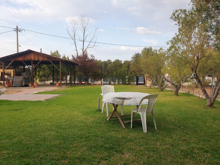 Семейна къща край морето в Сан Мамас (градина и каравана)