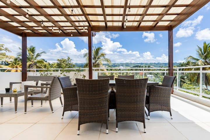 Пентхаус\Барбекю на покрива\3 спални\3 минути до плажа\Кралски размер\Климатик\Басейн