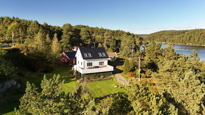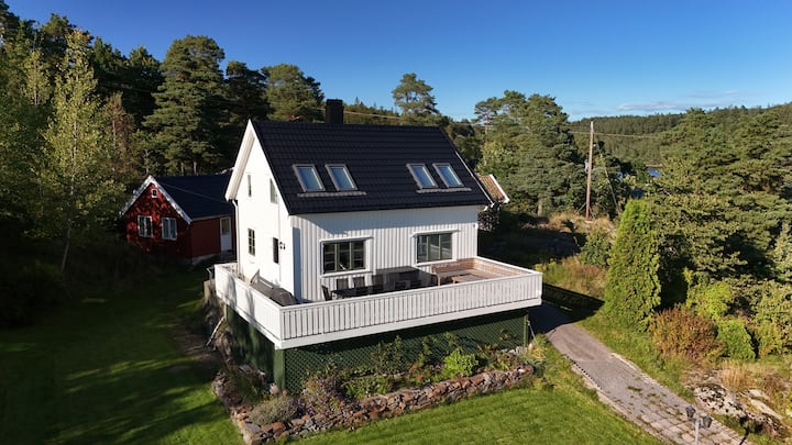 Първоначално построена през 1942 г., къщата наскоро е претърпяла цялостен ремонт. Съвременните удобства се съчетават безпроблемно с класическия южно норвежки крайбрежен стил. Предната тераса с площ от 30 м² е идеална за моменти на открито.