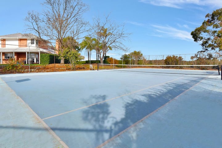 Beggars Bridge Homestead е кацнал на хълма до „The Vintage “, предлагащ великолепни 360 - градусови гледки, заобиколени от работещо лозе, подземен басейн, тенис корт, маса за снукър и спане до 14 души. Вие сте точно в действието, но може да сте на милион мили разстояние. Независимо дали искате да се отпуснете в басейна, да харесате няколко комплекта тенис или просто да се насладите на някои от най - добрите гледки към частни имоти в Хънтър. Моля, имайте предвид, че спа центърът, прикрепен към басейна, не работи.