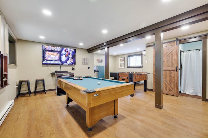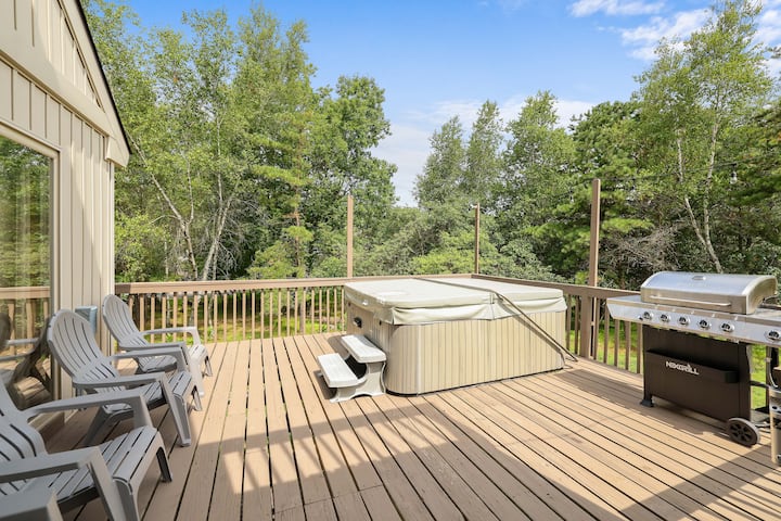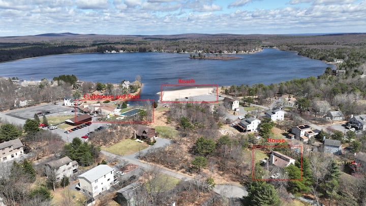 Разположена на тиха улица в сърцето на Towamensing Trails, нашата дървена колиба е идеалното място за бягство както за семейства, така и за групи. С просторна тераса, хидромасажна вана за 6 души и напълно оборудвана игрална зала, има по нещо за всеки. Насладете се на достъпа до басейна и езерото на общността през лятото или се отпуснете край каменната камина през зимата. Това уютно място за отдих разполага с 3 спални + самостоятелна бонус стая, три пълни бани и всички модерни удобства, необходими за незабравим престой само на минути от приключения на открито.