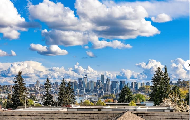 Изживейте Сиатъл със стил в този модерен прилепен дом с 3 спални, разположен в един от най - желаните квартали на града. Отпуснете се на частния покрив със спираща дъха гледка към планината Рейниър, Лейк Юниън и силуета. Идеално за семейства, пътуващи по работа и спортни фенове. Разходете се до кафенета и ресторанти. Само на минути от Грийн Лейк, UW, Space Needle и центъра на града. Очакват ви комфорт, удобство и незабравими гледки!