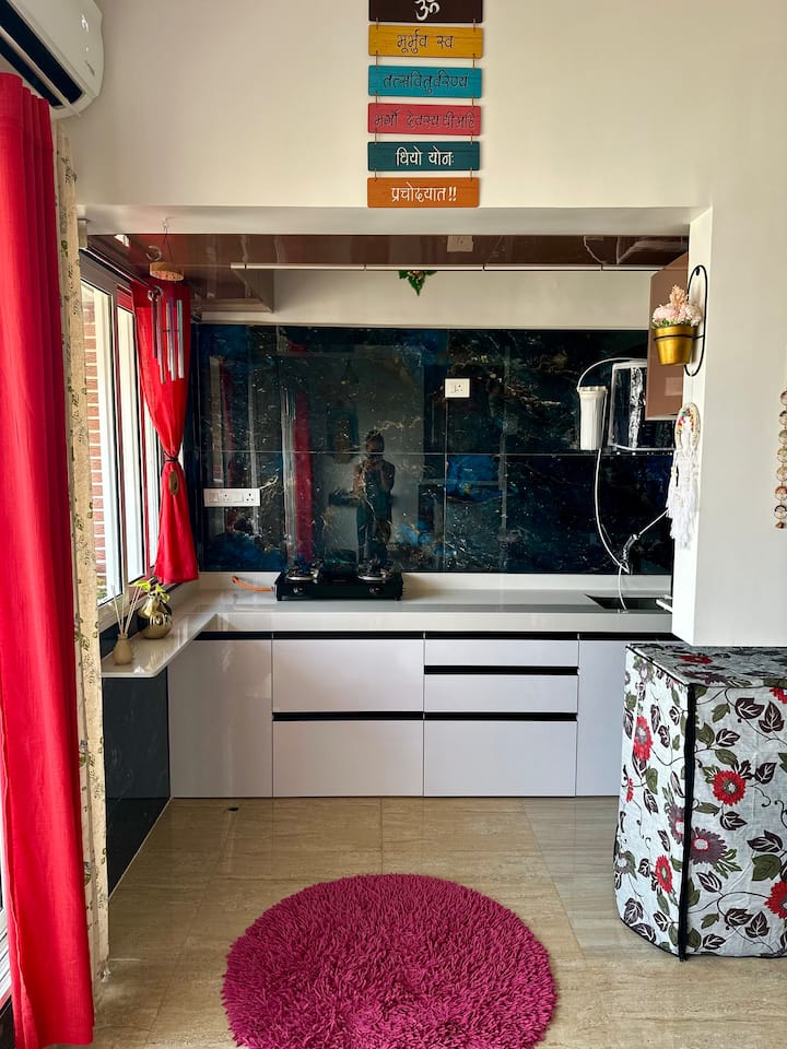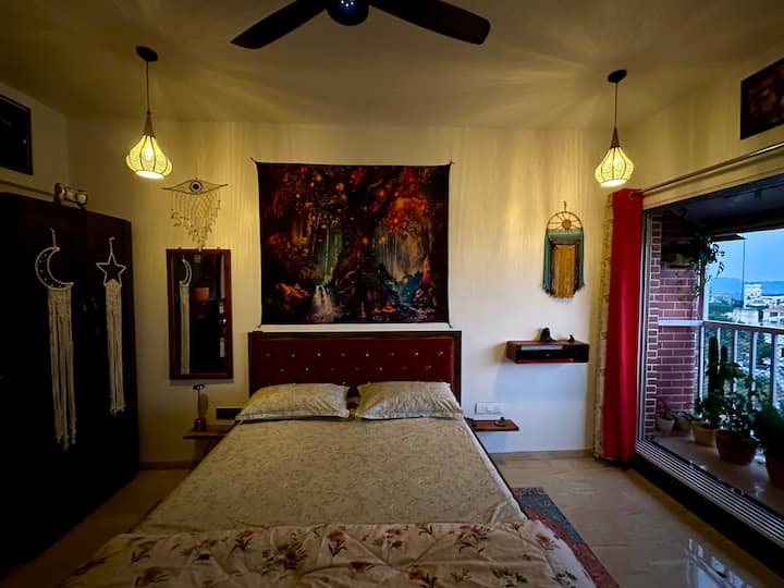 Скитането из цяла Индия ме вдъхнови да украся това място. Тя е направена с любов и грижа и много стил, който носи положителни вибрации и успокояващ ефект върху вашето същество. Поставям това място под наем, за да ми помогне да се разхождам наоколо, като същевременно обслужвам целта ви да намерите уютна обстановка. Сградата се намира в зелена зона, заобиколена от горски район. А вътре и в къщата има много вътрешни растения, които помагат за увеличаване на потока на кислород и намаляват замърсителите. Надявам се, че ще усетите спокойствието и спокойствието, които идват безплатно заедно с това място. Можете да го резервирате за една нощувка или за един месец. Мир и любов!