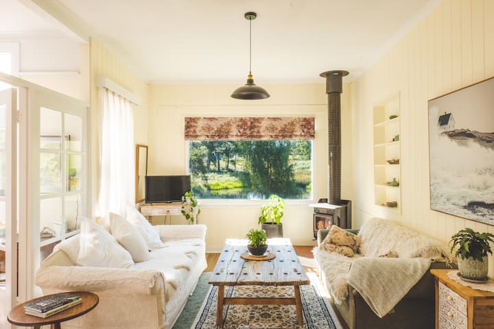 Когато времето е хубаво, не се притеснявайте да се разхождате из храстите или през ливадите, където ще забележите местни птици, водни птици и валабита – или да се отпуснете на палубите и да се възхищавате на гледката. Когато не е, свийте се пред нагревателя за бавно горене с книга или пред някоя от нашите настолни игри или видео клипове. Има телевизор с Chromecast, така че можете да влизате в приложенията си и да гледате каквото пожелаете. Или донесете свой собствен HDMI кабел, ако предпочитате. Има много удобни мебели и различни пространства, а и е много светло, с прекрасна гледка към градината, язовирите на фермата и местните храсти. През нощта слушайте за обажданията от жабите Източно Банджо във фермерските езера. Те са особено активни от септември до декември. А в горната част на имота има критично застрашени бързи папагали в жилището.