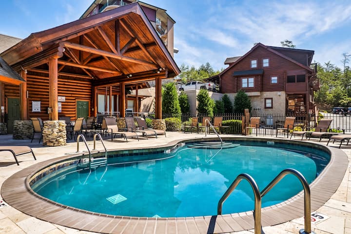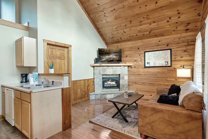 Отпуснете се в тази уютна дървена колиба в Пиджън Фордж. Идеално за семейства или двойки! Насладете се на отделен балкон с места за сядане и хамак, просторна спалня с двойно легло, удобен разтегателен диван и вътрешна камина. Забавлявайте се със смарт телевизор, бърз Wi-Fi и удобства в стил курорт: вътрешен/външен басейн, хидромасажна вана, фитнес център и игрална зала. Кухнята има уреди от неръждаема стомана и всичко, което ви е необходимо за готвене. Чисто, уютно и близо до Долиууд, Смоуки Маунтинс и всички атракции на Пиджън Фордж!