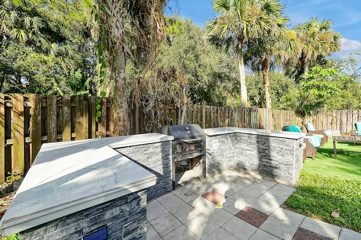 Just minutes from Port Canaveral, relax & recharge at the Tiki Oasis—your perfect pre- or post-cruise home. Enjoy a spacious backyard with a beautiful poolside Tiki bar, large grilling station, comfy heated pool with ample patio seating, and a hammock shaded by palm trees—ideal for families or groups.