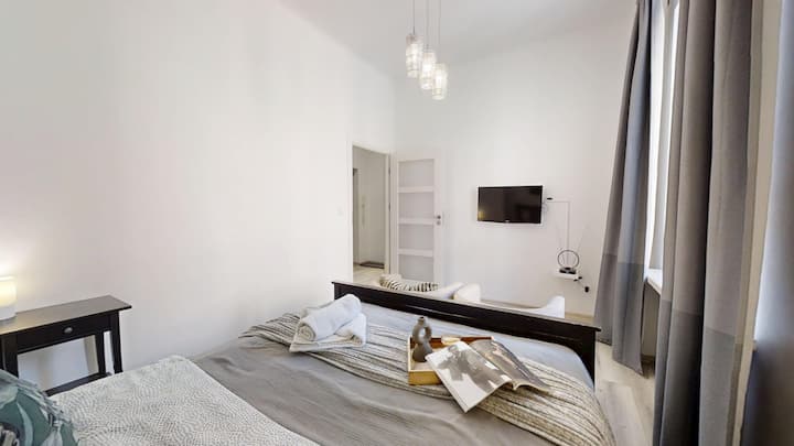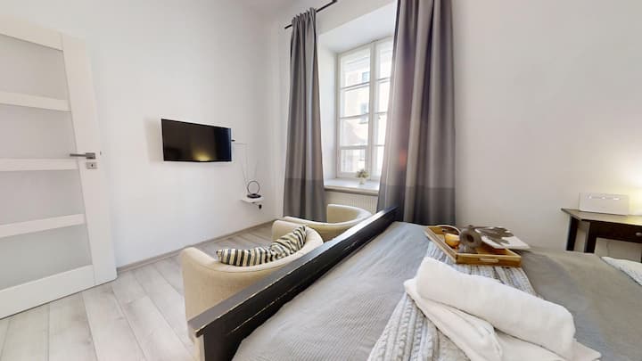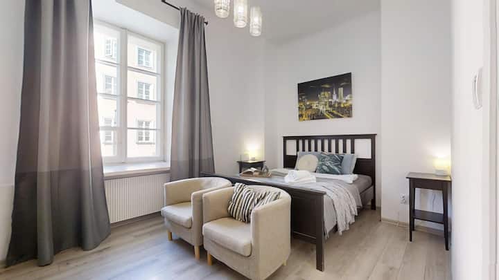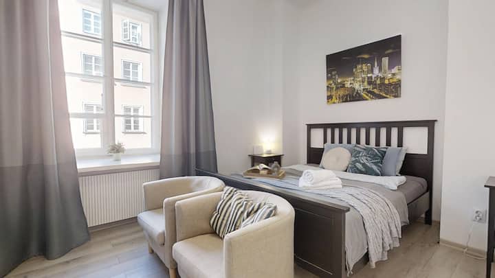 Каним ви в нашия апартамент, разположен в сърцето на Стария град и историческия кралски замък. Апартаментът се намира на първия етаж в климатична жилищна сграда. От прозорците ще можете да се любувате на очарователните улици на стария град и вкусните ресторанти. Отсядайки при нас, ще имате възможност да бъдете в центъра на всичко, което си струва да видите във Варшава. Целият апартамент е около 29 квадратни метра.