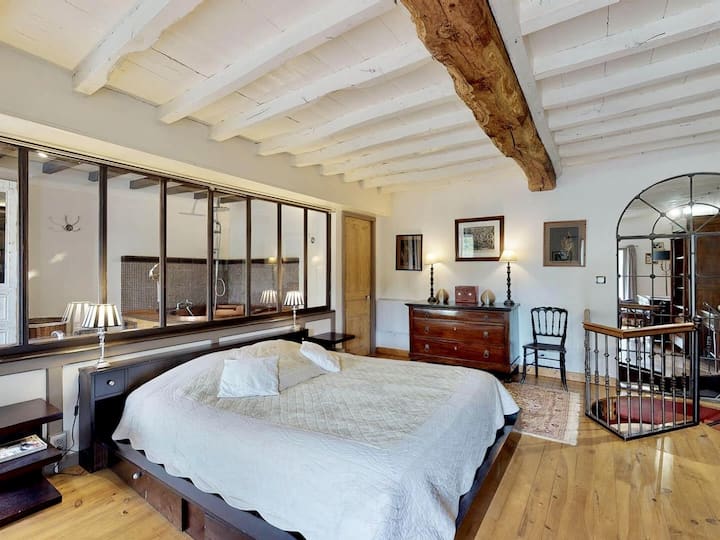Мебелите на La Grande Duckerie, наследството на дълга опашка от семейството на домакина ви Дженифър, се сливат перфектно с модерните удобства, достъпни за вас, за да се почувствате като петел за тесто... не... като патица за тесто!