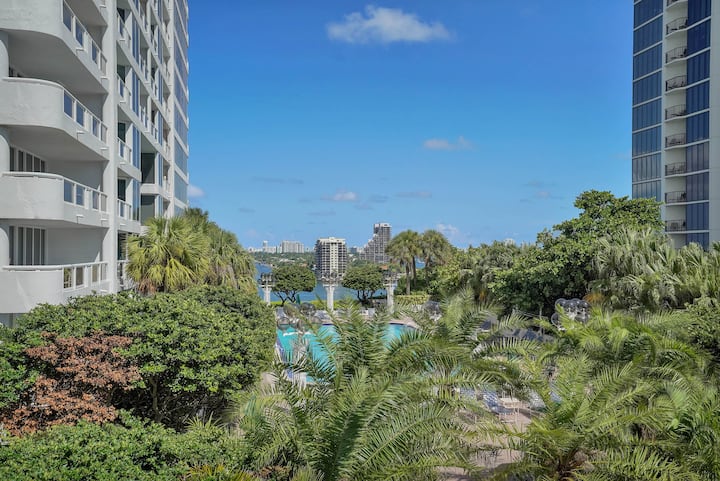 Излезте на собствения си самостоятелен балкон, където можете да се насладите на слънцето на Маями. Докато планирате уединението си на 10 - ия етаж с отопляем басейн с олимпийски размери и четири джакузита, отворени от 6:30 ч. до 19:00 ч. всеки ден, е ясно, че вземането на решения ще бъде най - трудната ви задача.