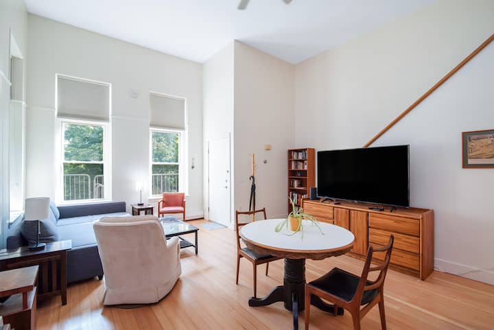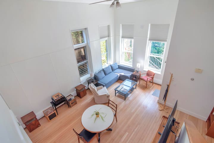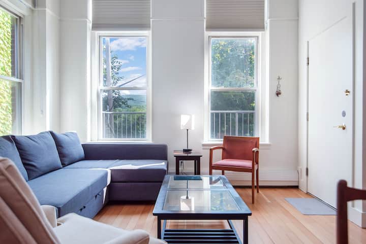 Слънчев, висок двуетажен лофт в центъра, живописни гледки