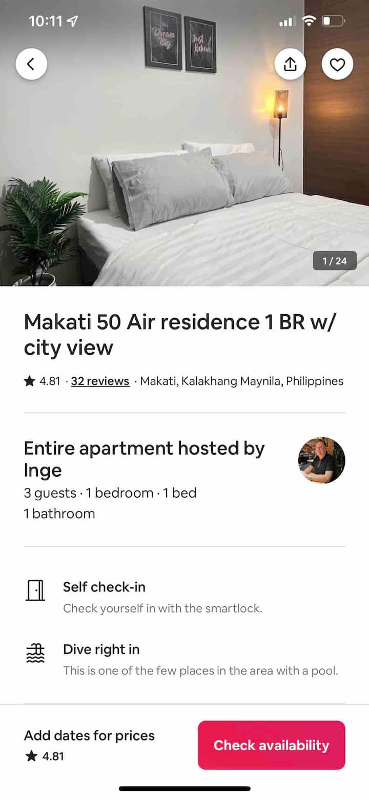 Makati 34-3 1br Air Residences (без балкон)