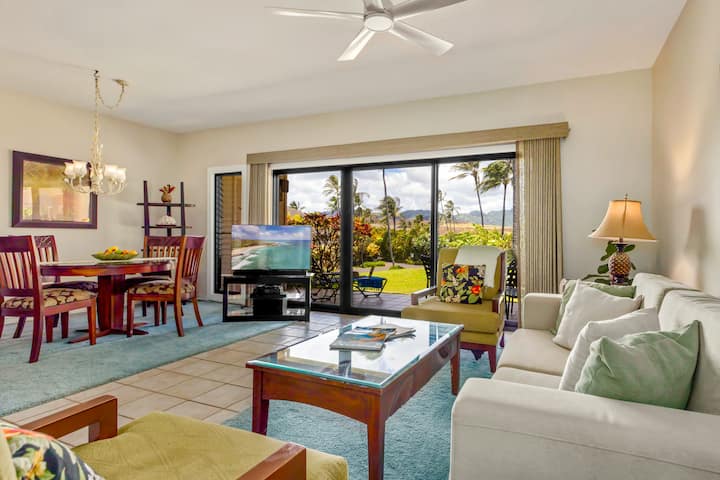 Ваканционна къща на плажа Поипу: гледка към планината, пешеходно разстояние до плажа