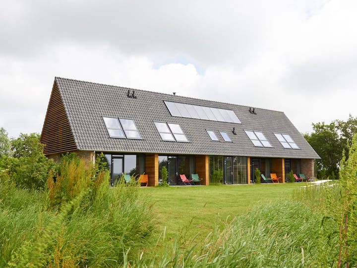 Това е мястото, където животът е свързан със сънуването и осъзнаването му. Вече осъзнах редица големи мечти (например, като живея във Фрисланд и го развих Dreamlân, отседнах в чист Фрисланд) и искам да дам възможност на други хора да работят и върху мечтата си. В нашия имот предлагаме на редица хора безплатно място мечтано място всяка година. Единственото нещо, което трябва да направят, е да работят сериозно с мечтата си. Районът е идеален за това: спиращото дъха облачно небе ви прави тихи и в същото време ви дава пространство, което да ви държи заети с неща, в които не се забърквате в ежедневната суматоха. Обичаме да настаняваме хора тук, да им даваме цялото спокойствие и пространство и да виждаме как се отпускат. Единият е сам по себе си, другият обича да знае всичко от нас: всичко е възможно. Това е вашата ваканция и вие правите това, което искате. Наслаждаваме се на маргините.