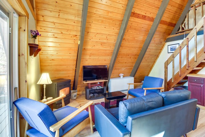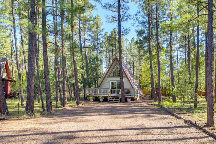 Дървена колиба с триъгълна форма с веранда и скара в Пайнтоп!