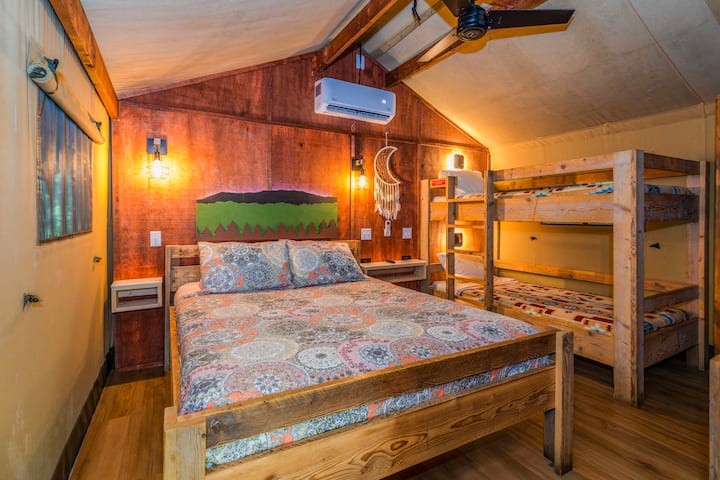 Ние сме семеен и управляван глемпинг къмпинг в сърцето на опушените планини. Разгледайте националния парк Грейт Смоуки Маунтинс или се качете на количката и се повозете до центъра на Гатлинбург. Ако търсите приключение, време е да резервирате място в лагера LeConte!