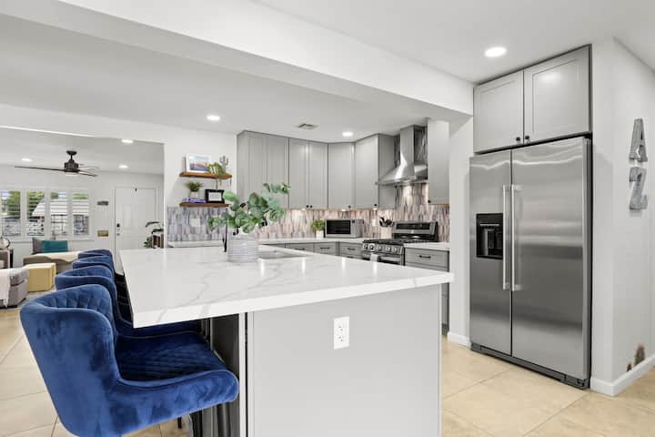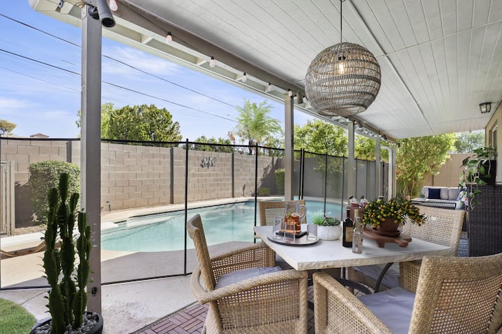 Добре дошли на вашата перфектна почивка в Скотсдейл! Този подходящ за семейства дом с 4 спални е закътан в тих квартал в Стария град на Скотсдейл, само на 3 минути от центъра и на няколко крачки от Скотсдейл Грийнбелт – 18-километрова павирана пътека за велосипеди и разходки с кученца.