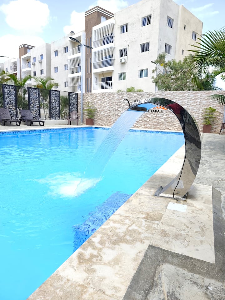 Отпуснете се в апартамент в Сантяго с басейн, климатик и телевизор