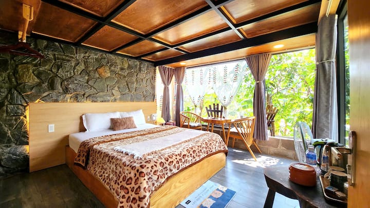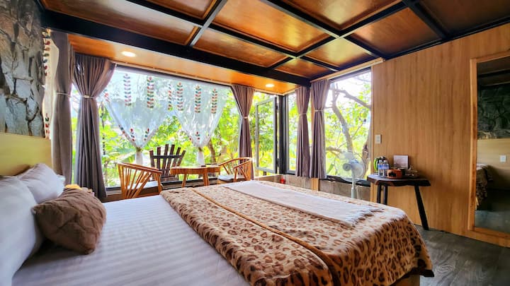 Романтична стая със стъклена стена, свързана с природата