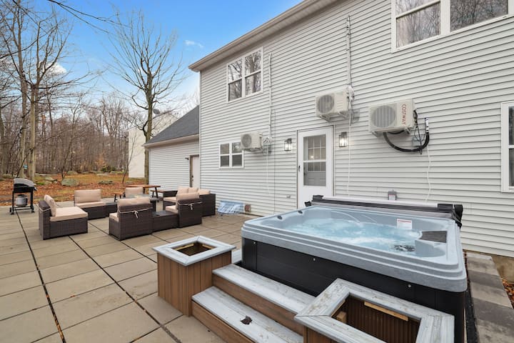 Зимата е тук! Това е голям дом в колониален стил с 6 спални и 3 бани. Всички спални с двойни и три четвърти легла са с 12-инчови матраци с мемори пяна. Футон в стаята за игри. Смарт телевизори във всяка стая и всяка стая има собствен сплит климатик/нагревател заедно с термостати за отопление. LED осветление в 5 спални. Хидромасажна вана /обособена стая за игри/ караоке / пълен вътрешен двор /скара за барбекю/ огнище/зарядно устройство за електромобили за гости с електрически превозни средства. Допускаме домашни любимци и има такса за тях. Басейните са отворени в края на юни!